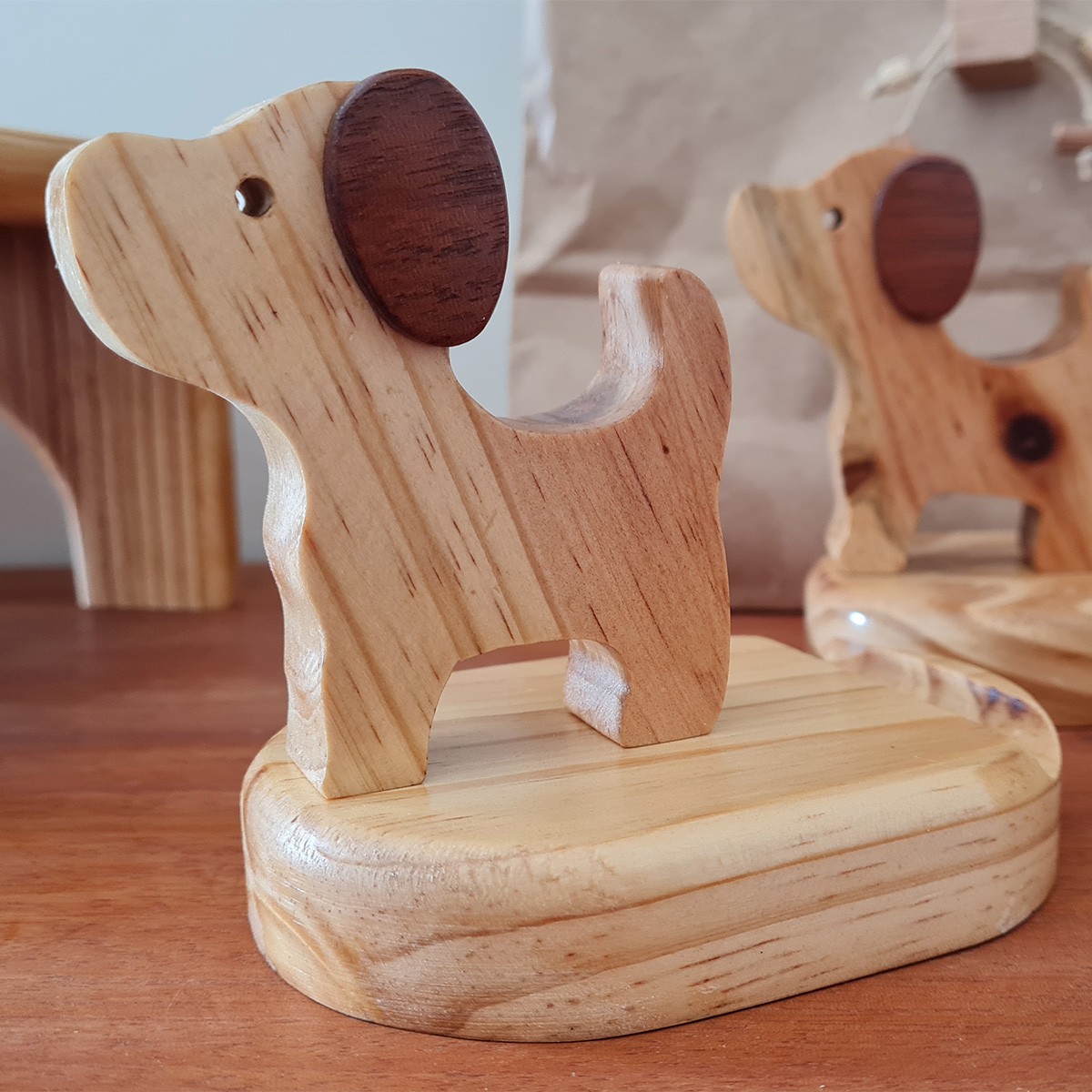 O apoio de celular em formato de cachorrinho é a escolha perfeita para aqueles que procuram um suporte funcional e ao mesmo tempo adorável para o seu dispositivo móvel. Feito 100% de madeira, este apoio artesanal é uma peça única e elegante, que irá complementar qualquer ambiente.